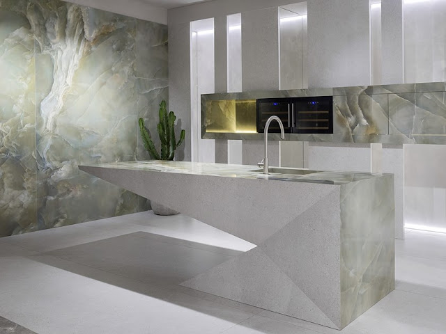 "The extremely reduced 6mm thickness, together with the advanced Ultra technology, allows an appropriately powerful band of light to travel through the Onice Ultra slabs and backlight the material."!!! source: archiproducts.comFrom the earlier discoveries in the field of interior design materials, I expect that we are going to continue to use extensively the terrazzo and discover more ways to do that.